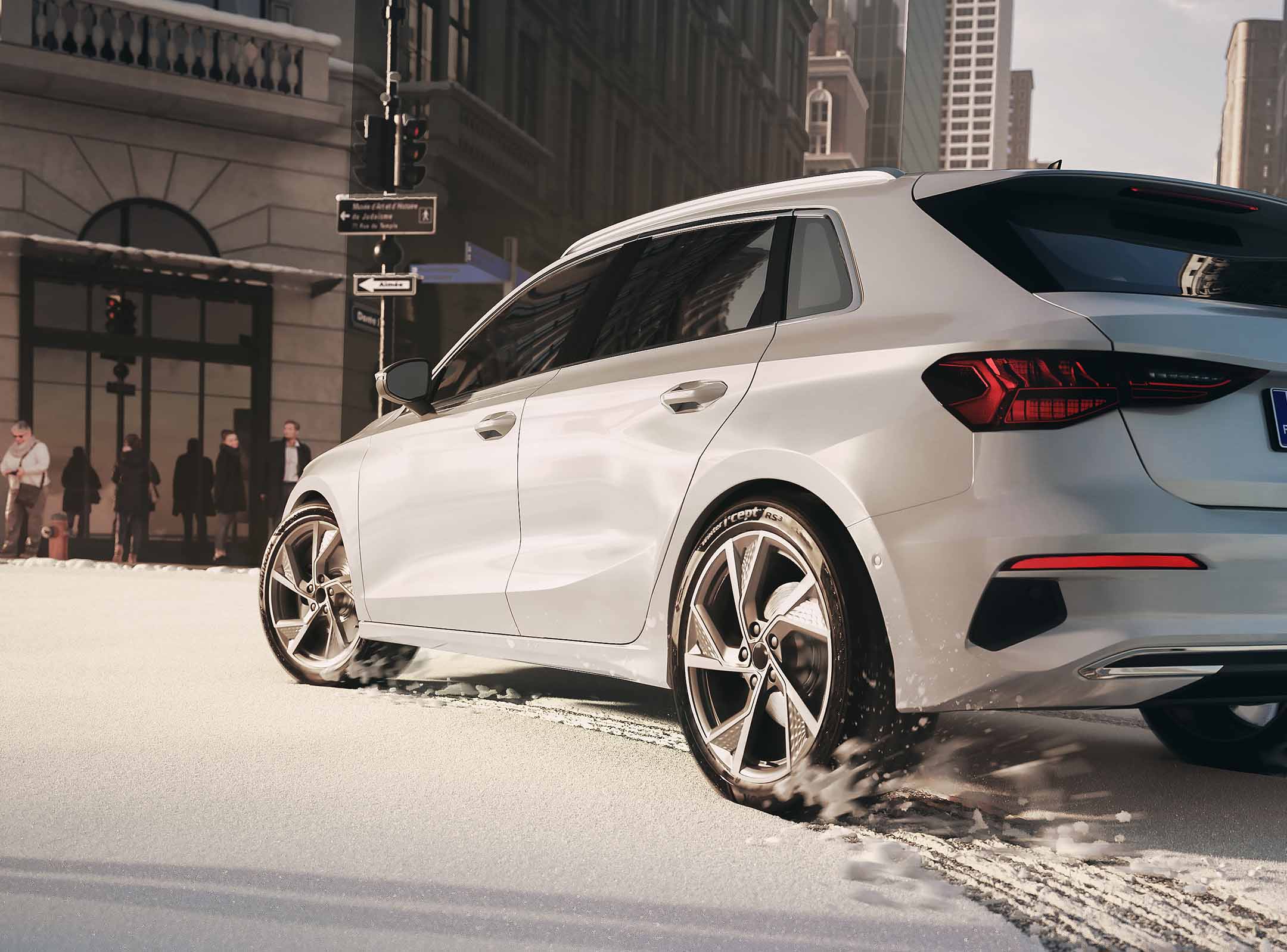A fordított V alakú csatornák, a fő csatornákkal ellentétes irányban lettek elhelyezve, hogy javítsák a tapadást havas úton. A fő csatornák élein elhelyezett mintaelemek növelik az érintkezési felületet, így növelik a tapadást havas úton.