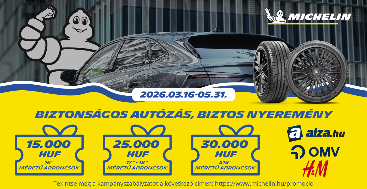 Az ajánlat 2026.03.16-tól 2026.05.31-ig érvényes. A promócióban kizárólag a megjelölt méretű Michelin abroncsok vesznek részt.